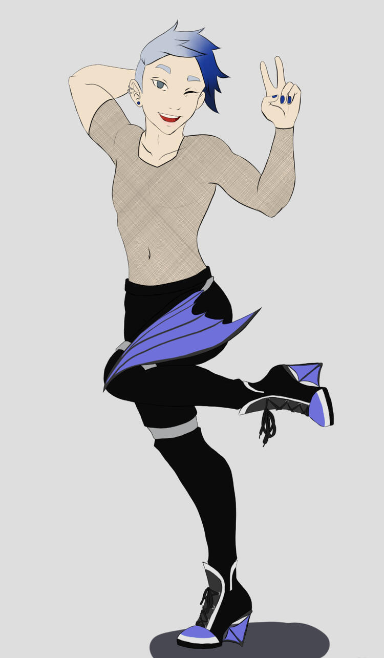 Weight: 116 Lbs (52 kg)Eye Colour: SilverHair Type: Buzzed on the right side, top sweeps over the left side of his headHair Color: Silver, fades to a cobalt blue toward the endBody Type: Toned, lean, thin, hairless, palePersonality: Gyrain is a sassy, sarcastic individual. He often shows off his quick wit, teasing people just to get a reaction. He's forward in a sense, happy to speak what's on his mind. He's not afraid to make the first move, and he's not afraid to defend his opinion. He likes theatre and dance, which make him good in terms of voice and flexibility.Magic: Gyrain is a member of Blue Pegasus, his guild mark being on his inner left thigh. He uses wind magic in combination with the wings across his outfit, sending the wind against the wings to drive his physical attacks. His attacks are based on momentum and rooted in dance. In addition to fast physical prowess, Gyrain can also manipulate the air around him in a variety of ways, similar to Erigor, but with his own flair.Backstory:Despite his gothic appearance, Gyrain is a bright and bubbly Wind Mage. A lover of climbing, sitting weirdly if he sits at all, and floating with his magic, he finds himself all around a room in seconds. He's incredibly sociable and energetic, with an attitude to bat. At Blue Pegasus he can be found darting to and from the job listings to gain some quick cash, which he manages to spend in a week. In a word, Gyrain could be described as impulsive. Yet those he meets can’t get enough.Gyrain is a toned, average height man aged 18 years. His hair is silver and longer, fading into a deep blue at the ends. The entire right side of his head is buzzed, leaving the top and left longer and swept to the side. His complexion is on the paler side, and he has a few black piercings in his right ear. He has piercing black eyes and a bright smile. He wears a black mesh shirt with a full sleeve on the right arm and a short sleeve on the left, and paints his nails to match the blue in his hair. On his legs he has black leather pants, a silver belt, and black heeled boots.These heels and belt, however, are unique. From the belt comes down two bat wings on his outer thighs, which have a hoop that goes right above his knee to keep them against his thigh. These “wings” are retractable. The heels are a normal shoe except for the heel itself, which is a bat wing that matches those on his thighs. The “palm” of the wing acts as the bottom of the heel, sharp to the point of cutting, while the fingers stretch out across the bottom of the foot for support. The spines of both sets of wings are silver while the skin between the spines is a deep blue matching his hair.Gyrain is a Wind Magic user, able to manipulate the air around himself to float, lift, cut, and just about anything he can think of. He’s apart of the Blue Pegasus guild for their accepting and dazzling nature. He's nearly mastered Wind Magic, having been trained by Erigor. Essentially Gyrain is able to use air casually and easily, the only thing weakening him being his physical strain. Using the wind he extends the wings along his thighs and through that, as well as his shoes, can propel himself to devastating kicks and acrobatics. By flying and dancing through the air, Gyrain shows the perfect balance of speed and strength.Gyrain doesn't have a tragic backstory, but it's not a perfect one. Before he became a wizard, he was a dancer of all sorts. His performances granted him fame and fortune, and he was known for his incredible acrobatic feats. Seeking to enhance himself, he sought out magic to boost his abilities. A protegé, and rumored lover, of Erigor, Gyrain was taught wind magic in hopes of using it to aid Eisenwald. But he had no intention, purely seeking to use the magic to dance. In his enhanced performances he rarely touched the ground, which brought suspicion, and soon elimination from the scene for “Performance Enhancing.” This was shortly after the fall of Eisenwald.Luckily he had a few friends from the guild. He had nothing else to work with, so he sought to rebuild Eisenwald and take revenge on behalf of Erigor. Really he just wanted something to do. Something fulfilling since his main careers went up in flames.He set up shop in a remote village. He built a dance studio as a front, hiding his new Dark Guild, Cyclone, beneath it. Their endeavors were carefully calculated. They didn't pick up more attention than they wanted until they were ready.He led Natsu and the gang to the village by leaving traces of Erigor's spells across various sites in Fiore. He left just enough clues to connect the destruction and raids to wind magic. Natsu could even smell Erigor on him.When they first arrived at the studio to investigate, Gyrain acted aloof. He had no clue what they were talking about. In fact, he offered to join them on their hunt to find Erigor, leading them right into a trap.After locking them in the guild hall, they managed to escape. They bested Gyrain's goons and came for him and him alone. It was a fierce battle, but of course Fairytail came on top. The wizards saw his prowess, however. They knew power such as his shouldn't rot away in jail. Not yet.After some convincing, Gyrain agreed to reform. With nothing but a unique outfit and Wind Magic under his belt, Gyrain went to the Blue Pegasus guild for money, and gained a family as well. He'd search for his old guild mates and attempt to bring them to the light as well. One day he hopes to surpass Ichiya in Master Bob's eyes.